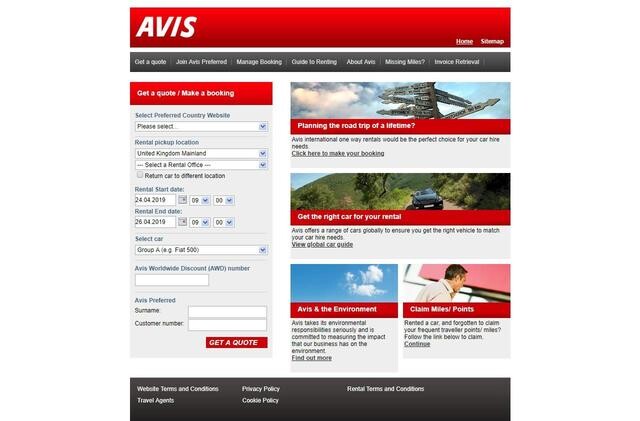 Learn From Great Design Avis Car Hire Inspect Element Car Rental Website Car Websites Graphic Design Business Card